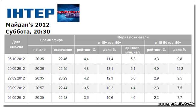 6 октября «Суперкубок Майданс» продемонстрировал показатели хуже финального эпизода третьего сезона танцевального проекта «МАЙDАН’S. 2012». Шоу прошло с такими показателями: доля 11,4%, рейтинг 4,4% (предварительные данные ГфК, аудитория 18+, 50 тыс+). «Вслед за победой в третьем сезоне грандиозного танцевального проекта телеканала «Интер» команда Кривого Рога завоевала еще и главную награду шоу – Суперкубок «МАЙDАН'S». Они отвоевали его и звание главной танцевальной столицы Украины у победителей предыдущих двух сезонов – команд Кировограда и Киева», - сообщила пресс-служба «Интера».