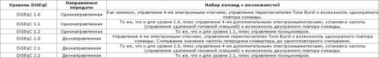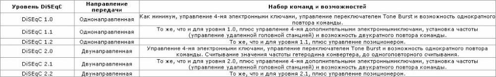Таблица 2. Возможности ресиверов в зависимости от реализованного уровня DiSEqC.